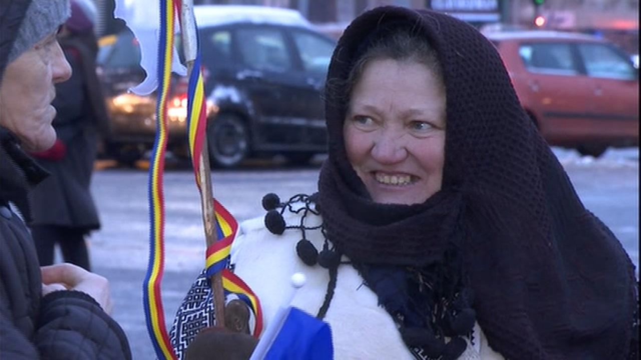 MESAJ EMOŢIONANT de la protestul din Piaţa Victoriei. Femeia în costum naţional şi cu năframă, care vrea să pacifice România (VIDEO)