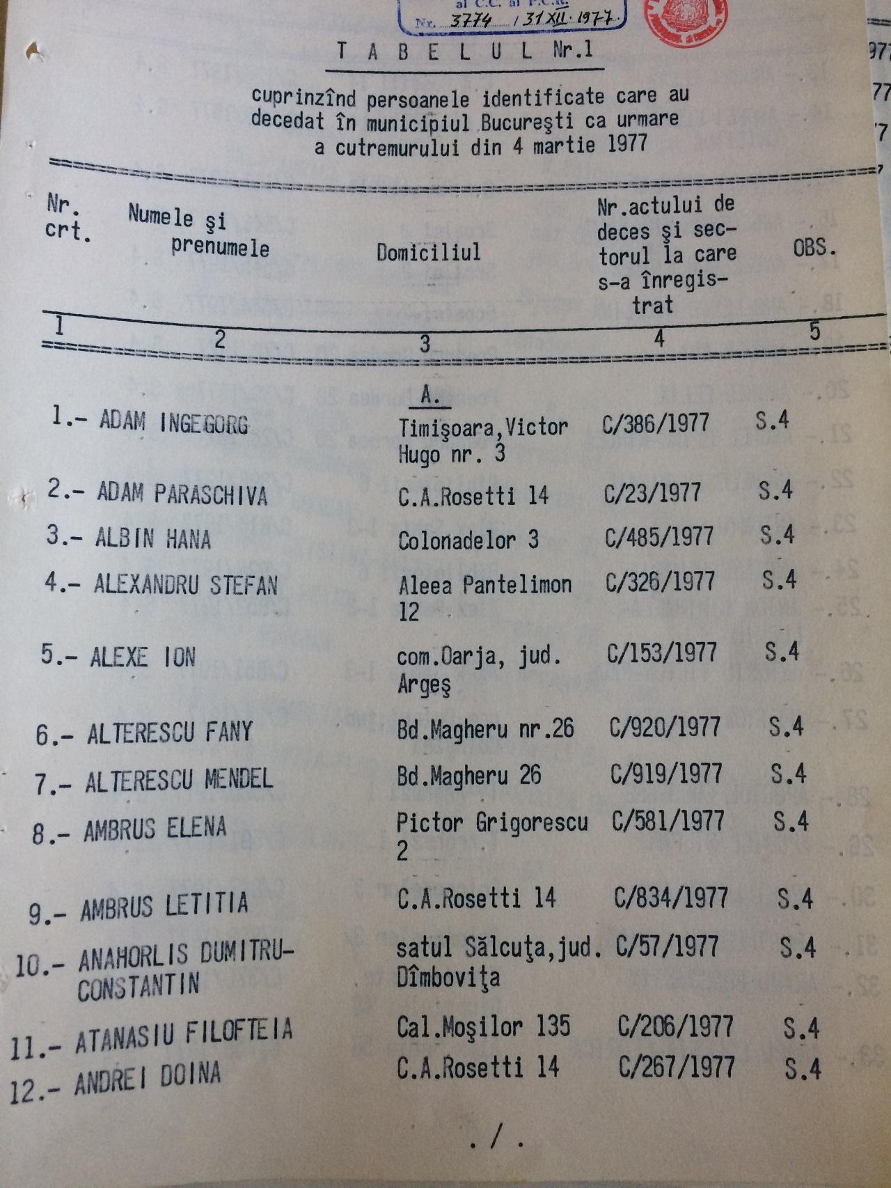 DOCUMENTE UNICE! Listele cu persoanele decedate la cutremurul din 1977. Câţi străini au murit în Bucureşti