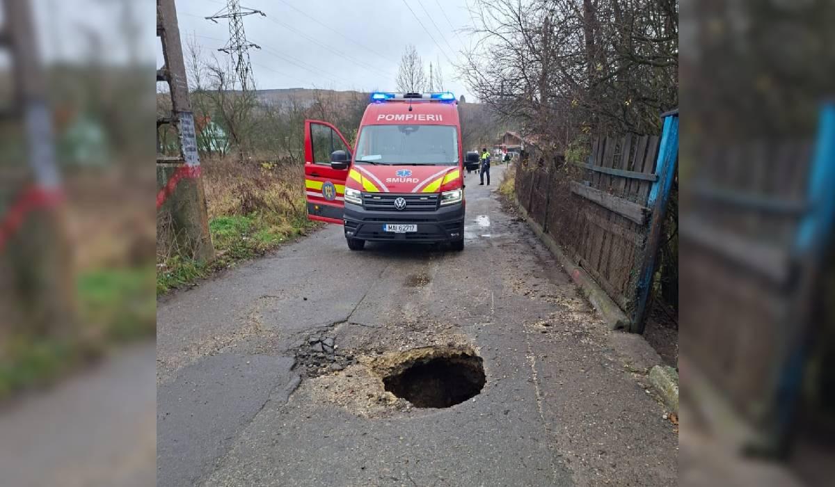 Doi bărbați au căzut într-o groapă formată în mijlocul străzii, în Petroșani. Au fost transportaţi la spital | Sursa foto: ISU