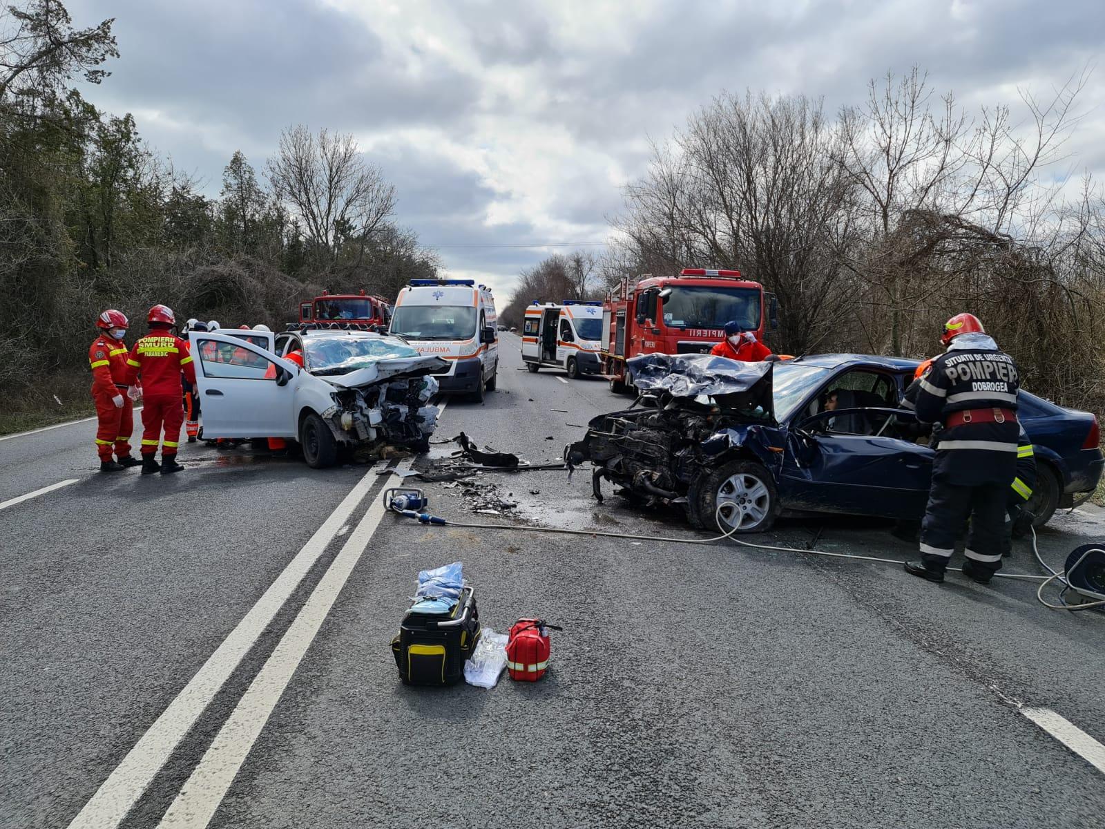 Doi bătrânei, de 85 și 69 de ani, și-au găsit sfârșitul într-un cumplit accident la Neptun. În urma coliziunii frontale, alte două persoane au ajuns la spital | Sursa foto: ISU si SAJ