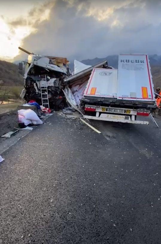 Doi morţi, după ce două TIR-uri s-au ciocnit frontal pe Valea Oltului. Unul dintre autotrenuri a luat foc