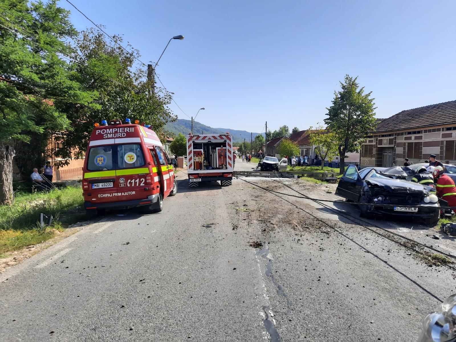 Doi morți într-un Mercedes strivit de un stâlp de beton, la Valea Bistrei, în Caraș Severin