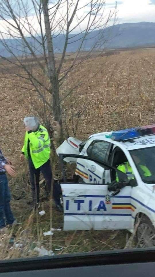Maşina de poliţie a ajuns în şanţ | Sursa foto: Facebook