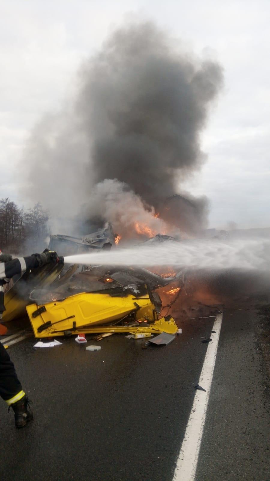 Doi şoferi de TIR au murit în Caraş Severin. Camioanele lor s-au ciocnit şi au luat foc
