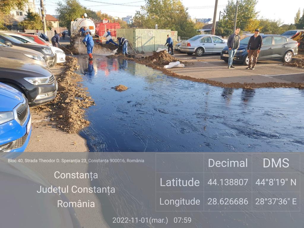Dorel "a dat din nou lovitura"! Parcarea unui bloc din Constanţa, acoperită de păcură în timpul unei operaţiuni de pompare