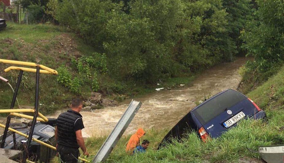 Două maşini în râu, la Sibiu, după ce o şoferiţă a făcut o manevră imposibilă