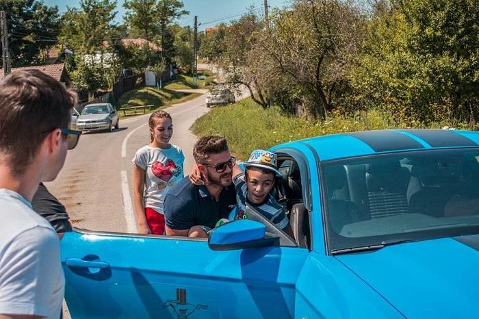 Dragoş, un băiat de 10 ani care trăieşte într-un scaun cu rotile, s-a trezit la poartă cu 50 de maşini Ford Mustang