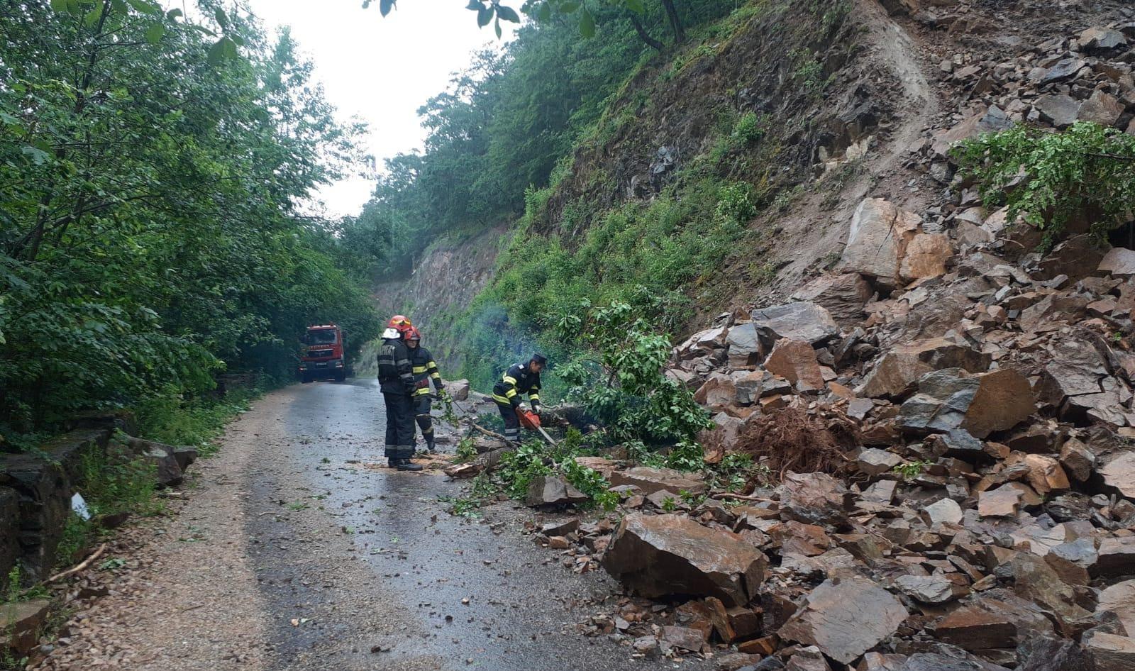 Drum judeţean din Cluj blocat, după ce mai multe pietre şi copaci s-au desprins de pe un versant