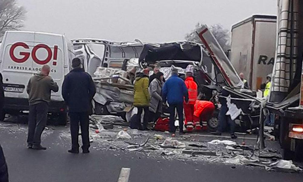 Dubă românească făcută praf în Ungaria, pe autostradă, unde a intrat direct într-un TIR