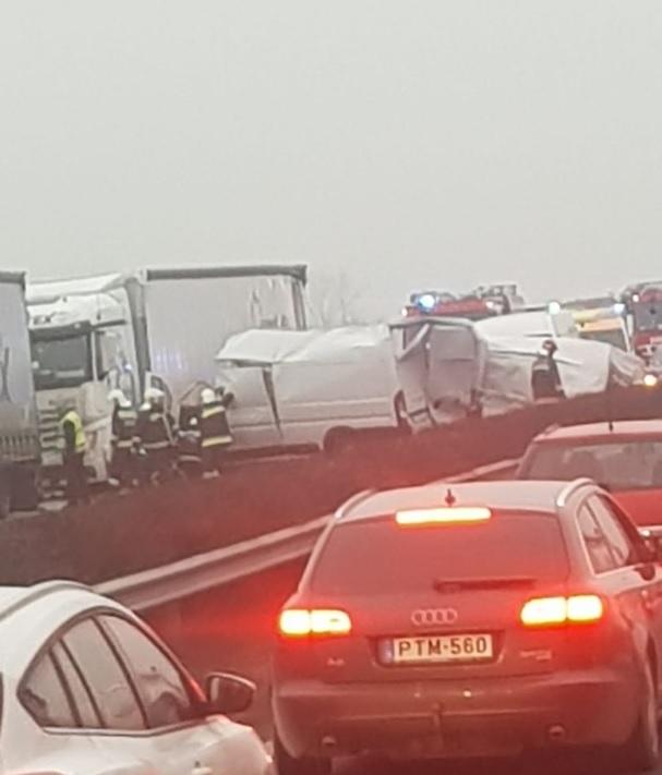 Dubă românească făcută praf în Ungaria, pe autostradă, unde a intrat direct într-un TIR