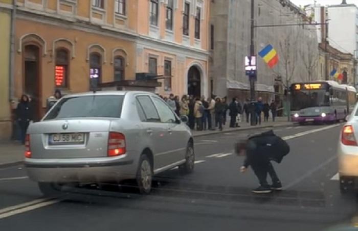 Elev din Cluj, izbit puternic de o maşină, în timp ce traversa strada în fugă. Totul a fost filmat cu o cameră de bord. Video