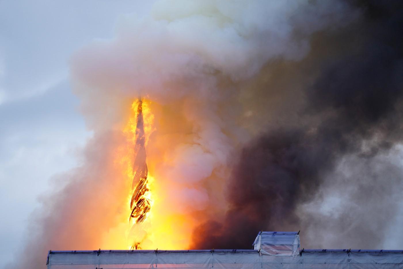 "Este Notre-Dame-ul nostru", Incendiu uriaş la Bursa din Copenhaga, una dintre clădirile emblematice ale orașului. Turnul, vechi de 400 de ani, s-a prăbușit