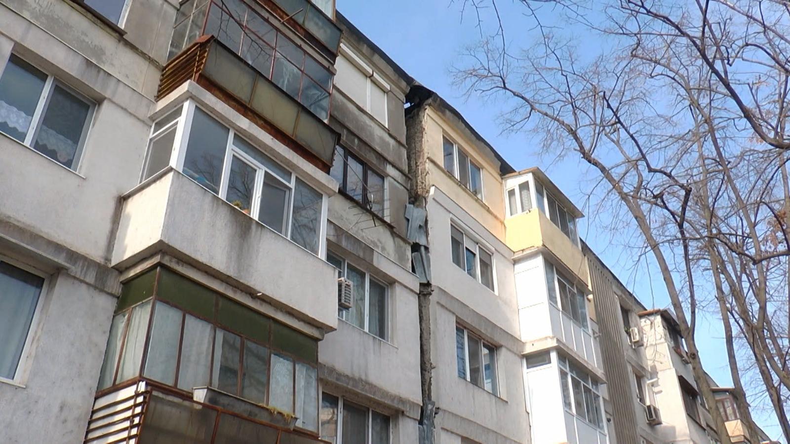 "Eu în sufragerie mă duc la vale". Un bloc din Galaţi stă să se prăbuşească. Scările se distanţează, iar armatura de beton de la etajele superioare s-a rupt în două