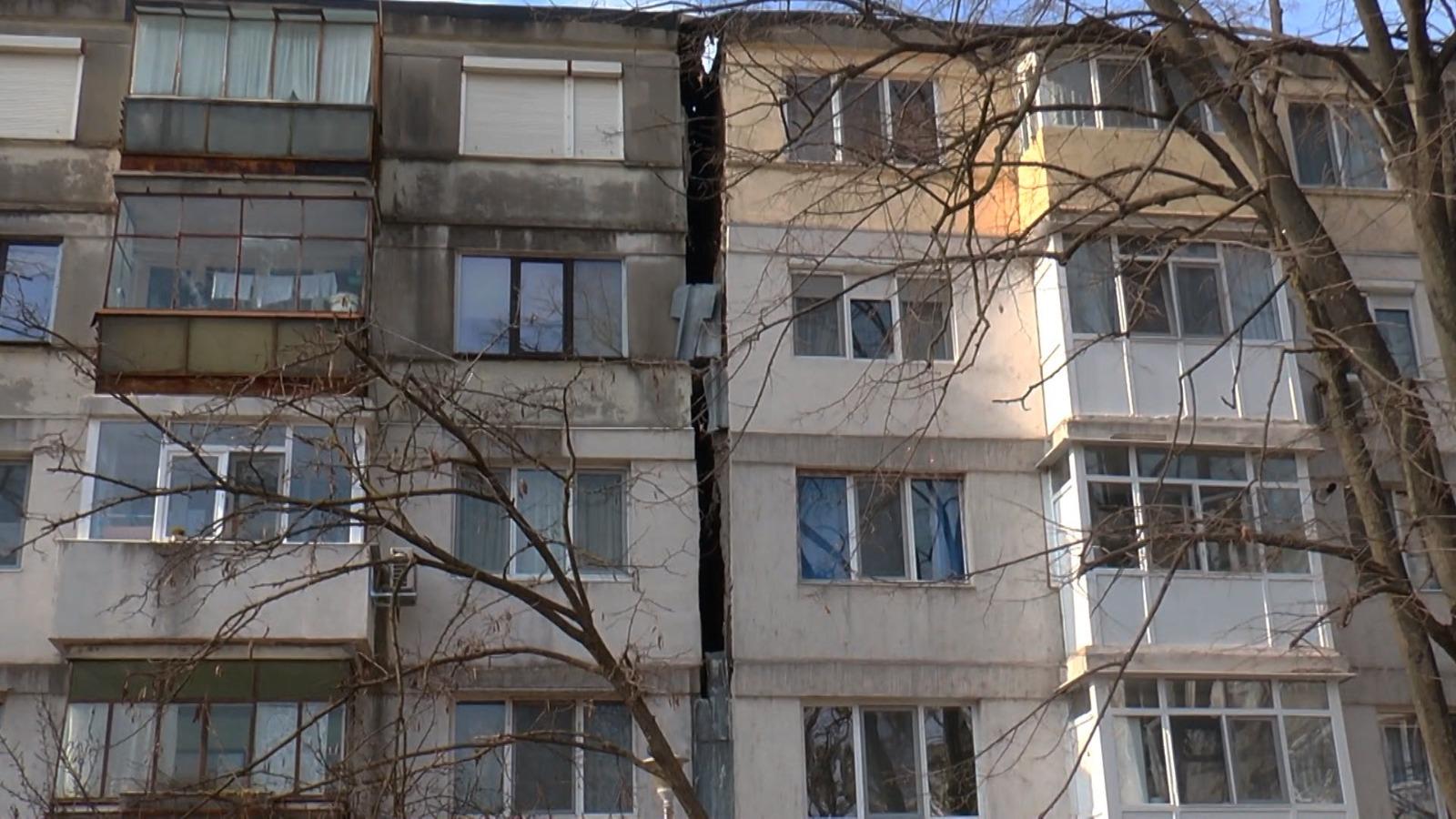 "Eu în sufragerie mă duc la vale". Un bloc din Galaţi stă să se prăbuşească. Scările se distanţează, iar armatura de beton de la etajele superioare s-a rupt în două