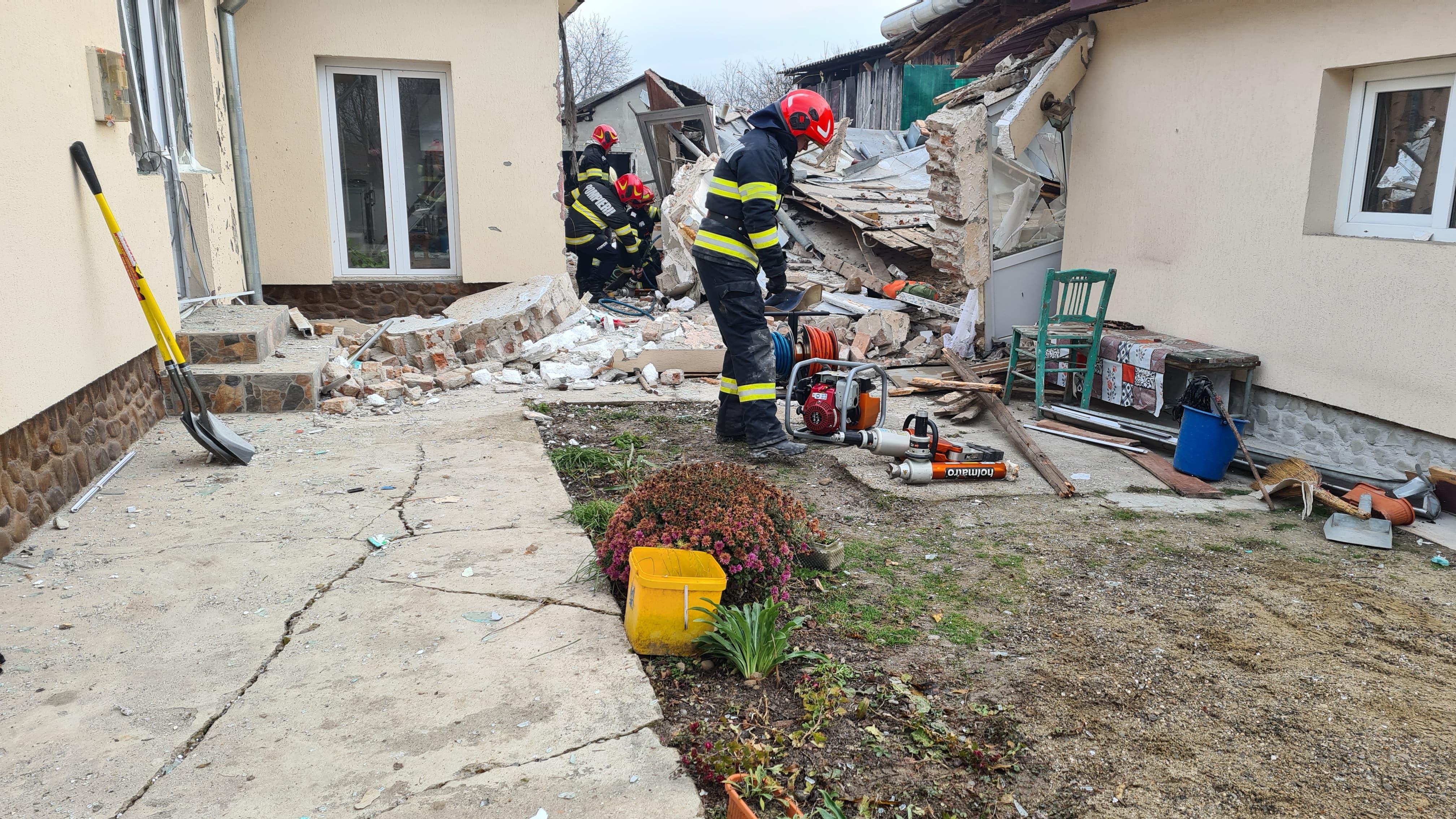 Explozie într-o casă din Prahova. O femeie de 80 de ani a fost prinsă sub dărâmături: victima, conştientă