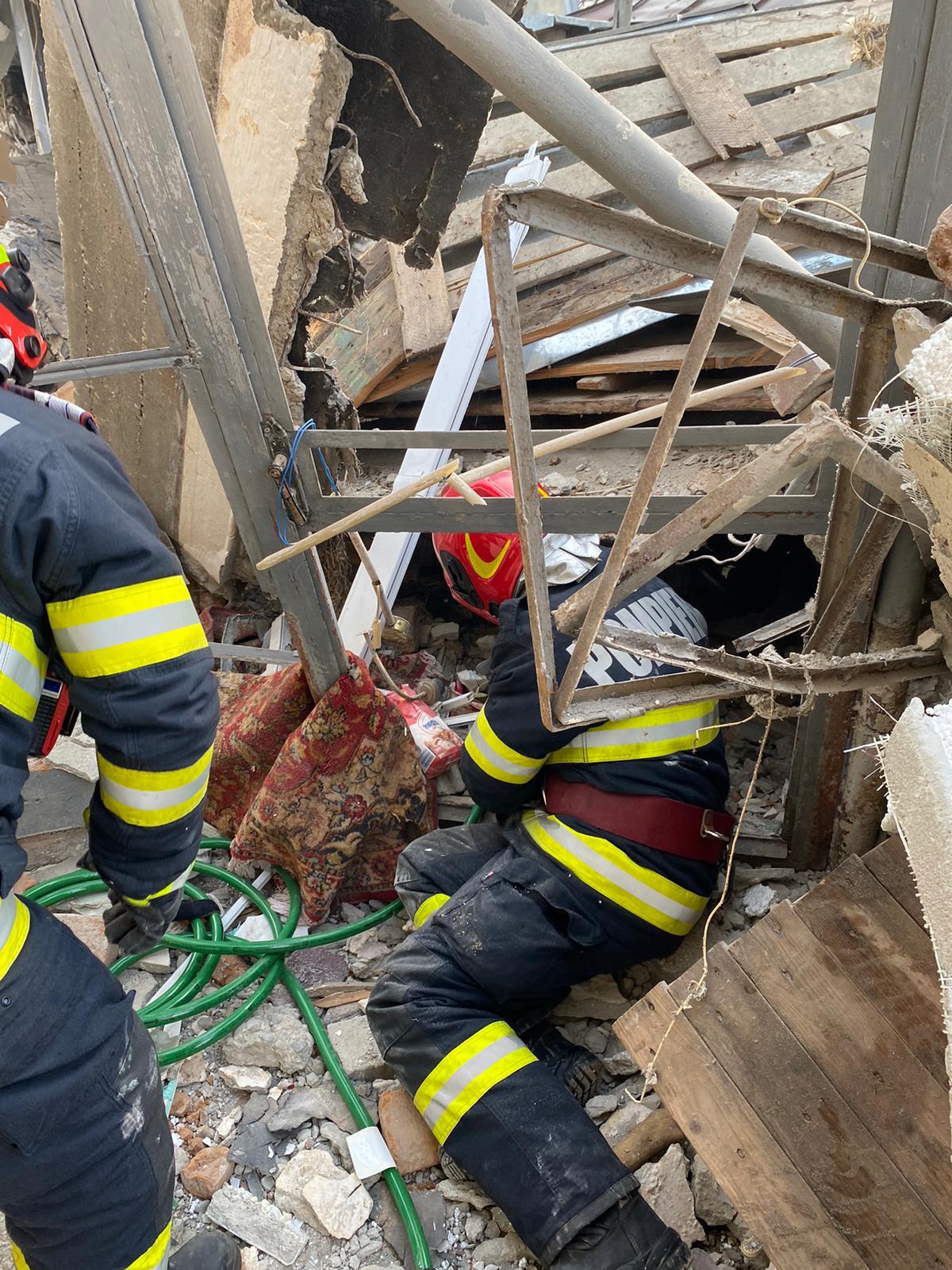 Explozie într-o casă din Prahova. O femeie de 80 de ani a fost prinsă sub dărâmături: victima, conştientă