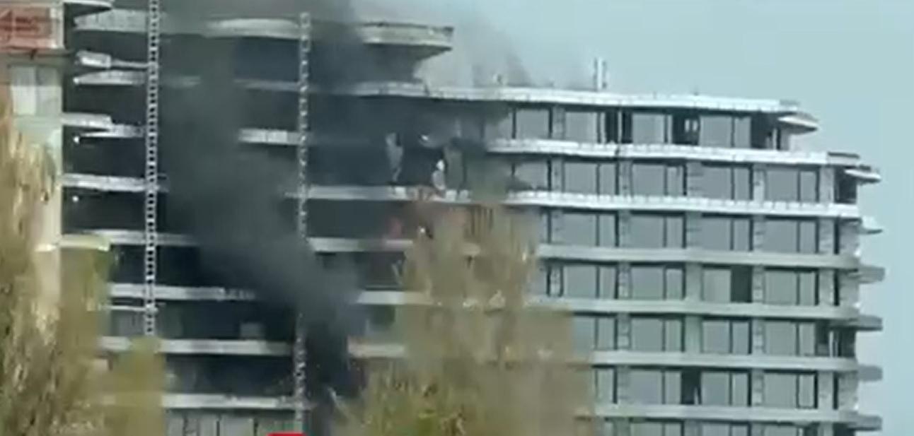 Fațada unui bloc din Mamaia Nord s-a făcut scrum. Muncitorii au încercat să stingă incendiul, însă flăcările au fost prea puternice