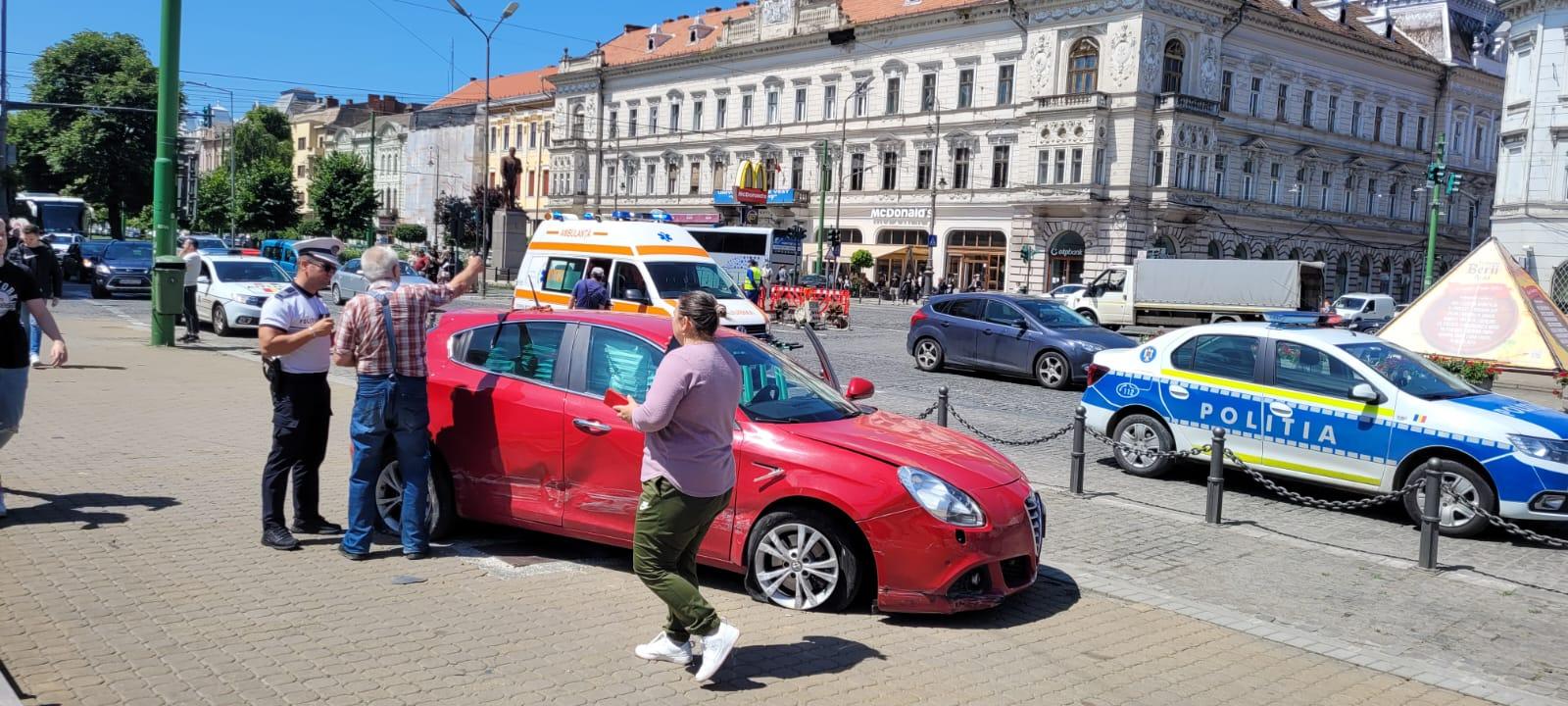Femeie din Arad, accidentată în timp ce stătea pe o bancă în faţa Palatului Administrativ, după o şicanare în trafic. Femeia a fost aruncată la doi metri distanţă