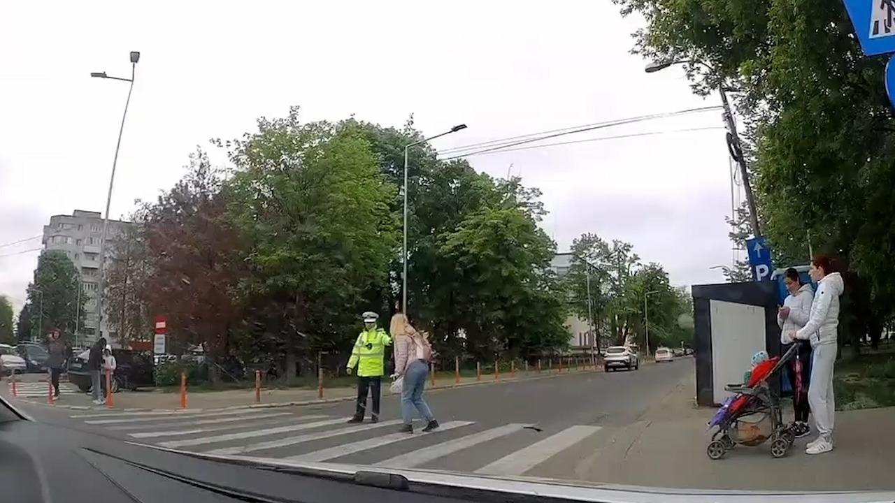 Femeie din Bacău, alergată de un poliţist de la circulaţie ca să fie amendată. Trecuse strada în fugă când el i-a cerut să se oprească