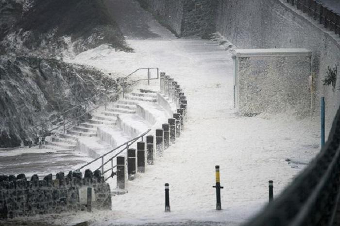 Uraganul Ofelia a adus spuma de mare într-un orășel din Anglia