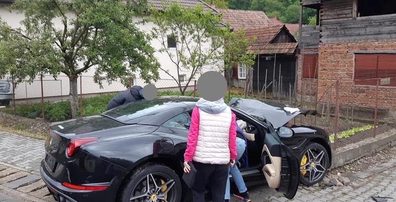 Ferrari distrus la Șugag, în Alba. Șoferul a spulberat un Ford staționat și s-a oprit în gard