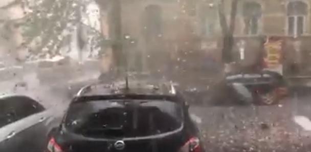 Filmari noi cu bucăţi de gheaţă cât oul care fac praf maşini în Zalău. Zeci de autoturisme avariate