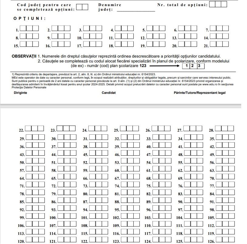 Fişa de înscriere la liceu - model completat pentru 2024. La ce trebuie să fie atenţi elevii şi părinţii