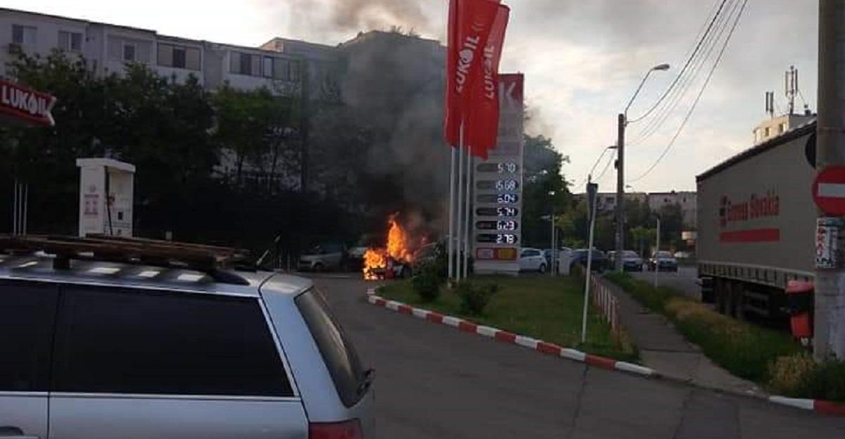 Flăcări în benzinărie, un taxi a luat foc lângă pompă, la Galaţi (video)