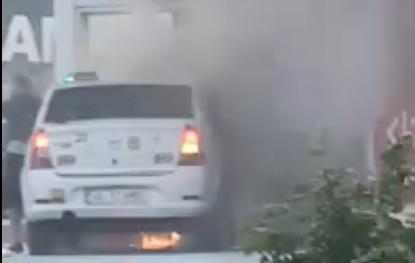 Flăcări în benzinărie, un taxi a luat foc lângă pompă, la Galaţi (video)