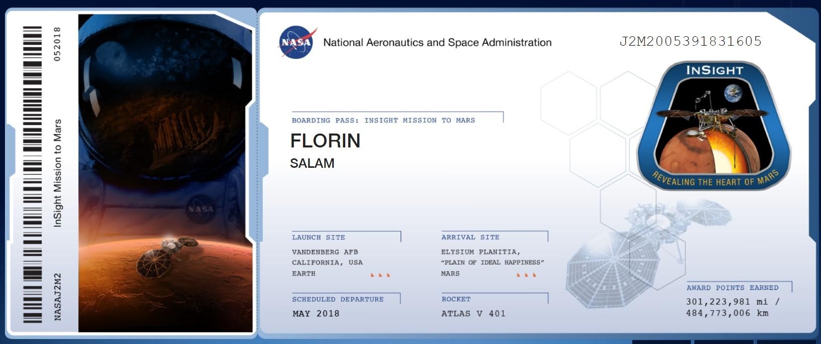 NASA a trimis numele lui Florin Salam pe Marte, cu sonda InSight