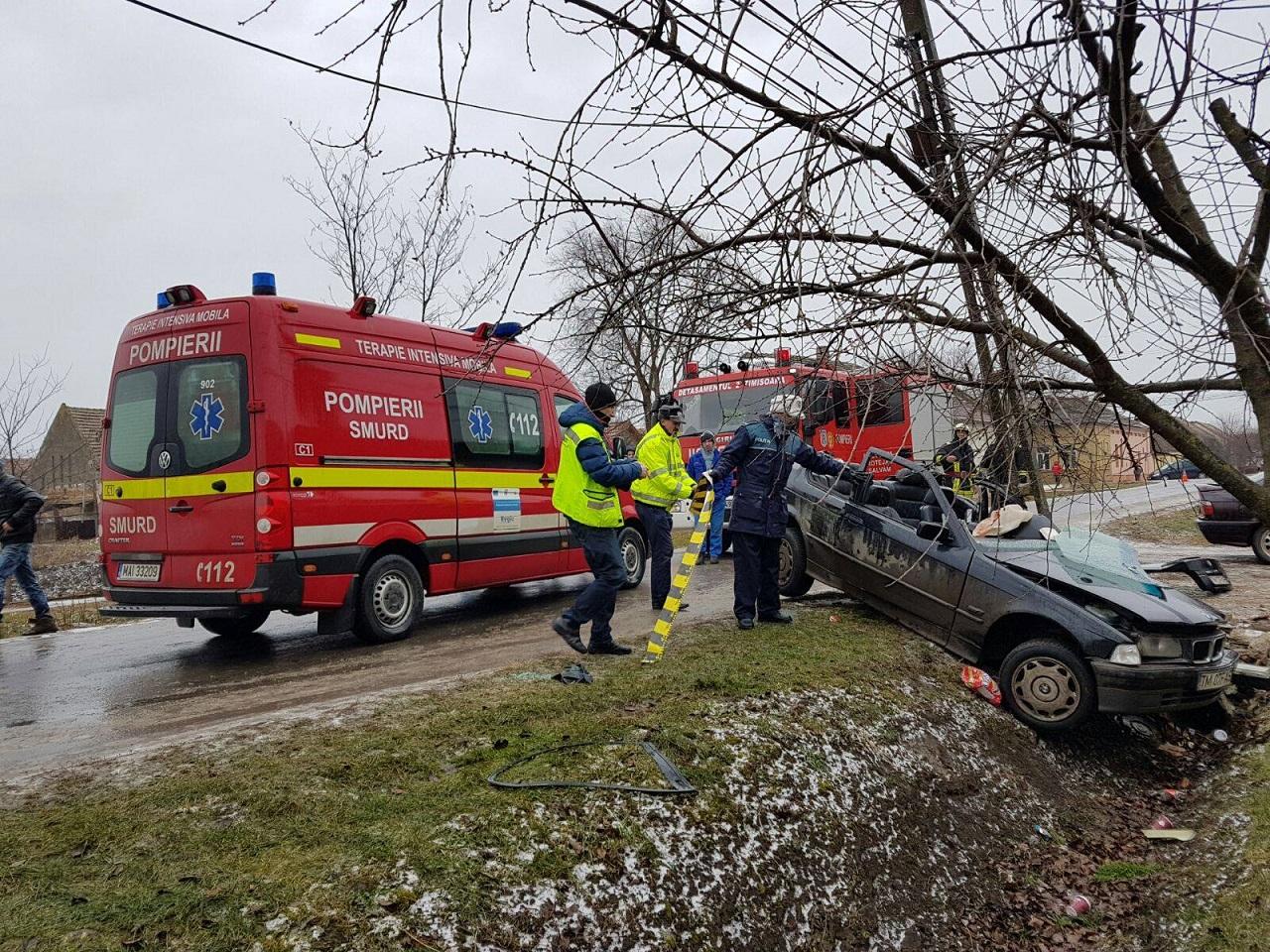 FOTO Accident cumplit în Timiş. O tânără de 26 de ani a murit, după ce a izbit un stâlp cu maşina