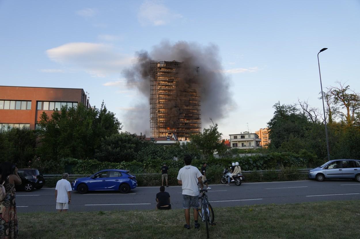 Un bloc de 18 etaje, din Milano, a fost curprins de flăcări când peste 100 de persoane se aflau în interior - VIDEO