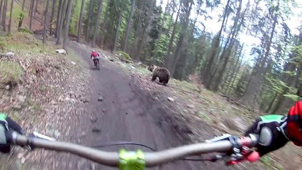 Imagini terifiante: Un biciclist a fost fugărit de un urs pe un drum forestier VIDEO