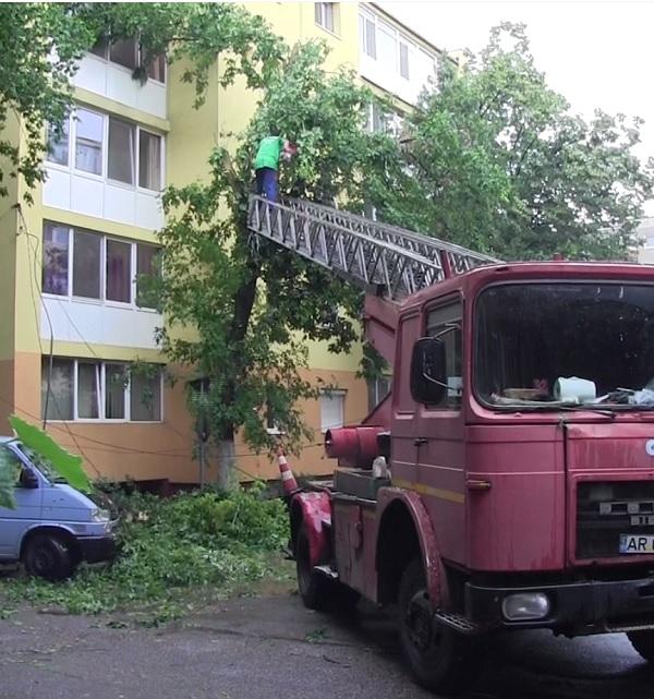 Furtună devastatoare în Arad. Pasaje și subsoluri inundate, copaci smulși de vânt, mașini avariate (Foto, Video)