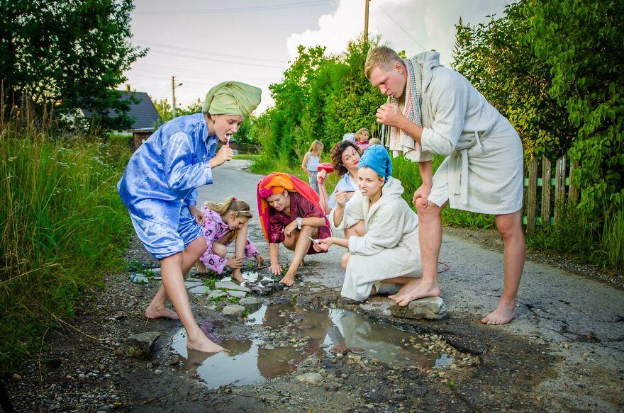 Galerie foto! Cum s-au gândit să atragă atenţia autorităţilor asupra gropilor din asfalt