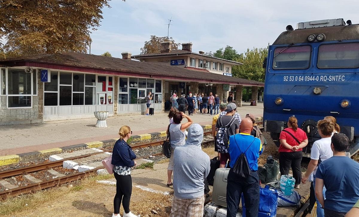 Zeci de oameni s-au asezat in fata trenului, in gara Eforie