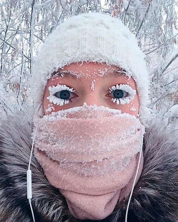 Anastasia Gruzdeva a făcut un selfie în oraşul Yakuţk din Siberia, pe gerul năprasnic | Sursa foto: Siberian Times