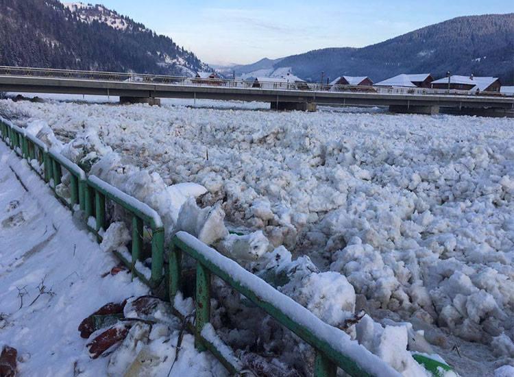 Podul de gheata de pe raul Bistrita s-a intins pe aproximativ trei kilometri | Sursa foto: Observator