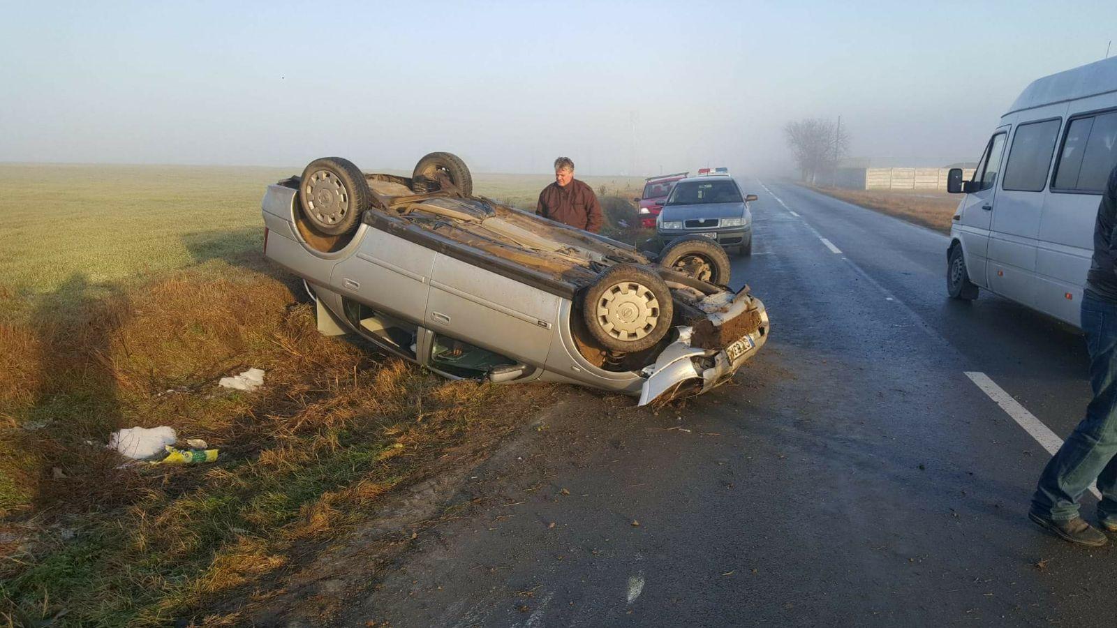 Grav accident în Constanţa. Două persoane rănite, după ce o maşină s-a răsturnat la Săcele (Foto)