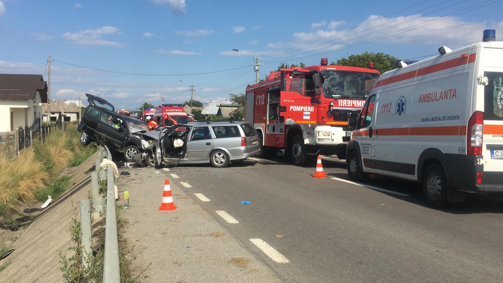 Grav accident la Reteag, cu patru victime, două maşini s-au lovit frontal. Intervin pompierii şi ambulanţe