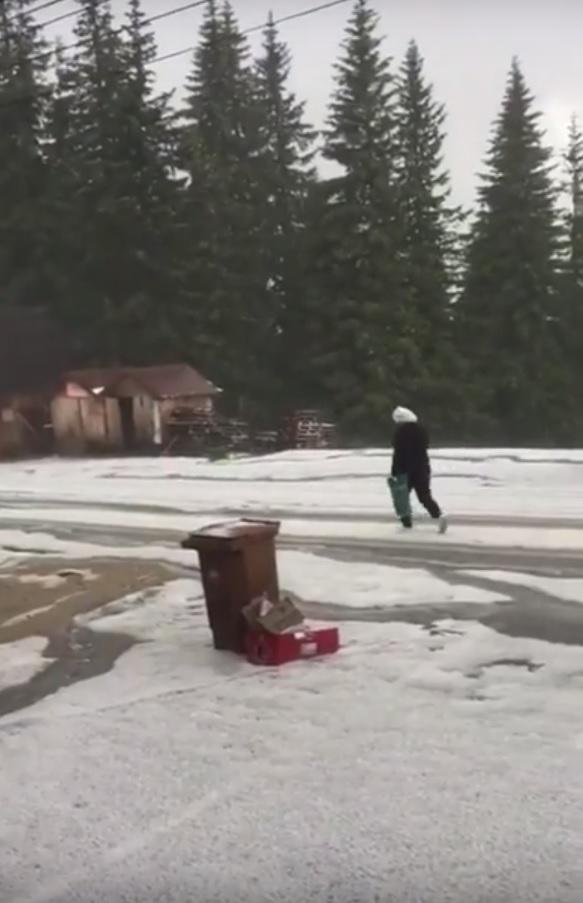 Grindina a făcut prăpăd la Rânca! O furtună de câteva minute a acoperit stațiunea cu un strat gros de gheață (Video)