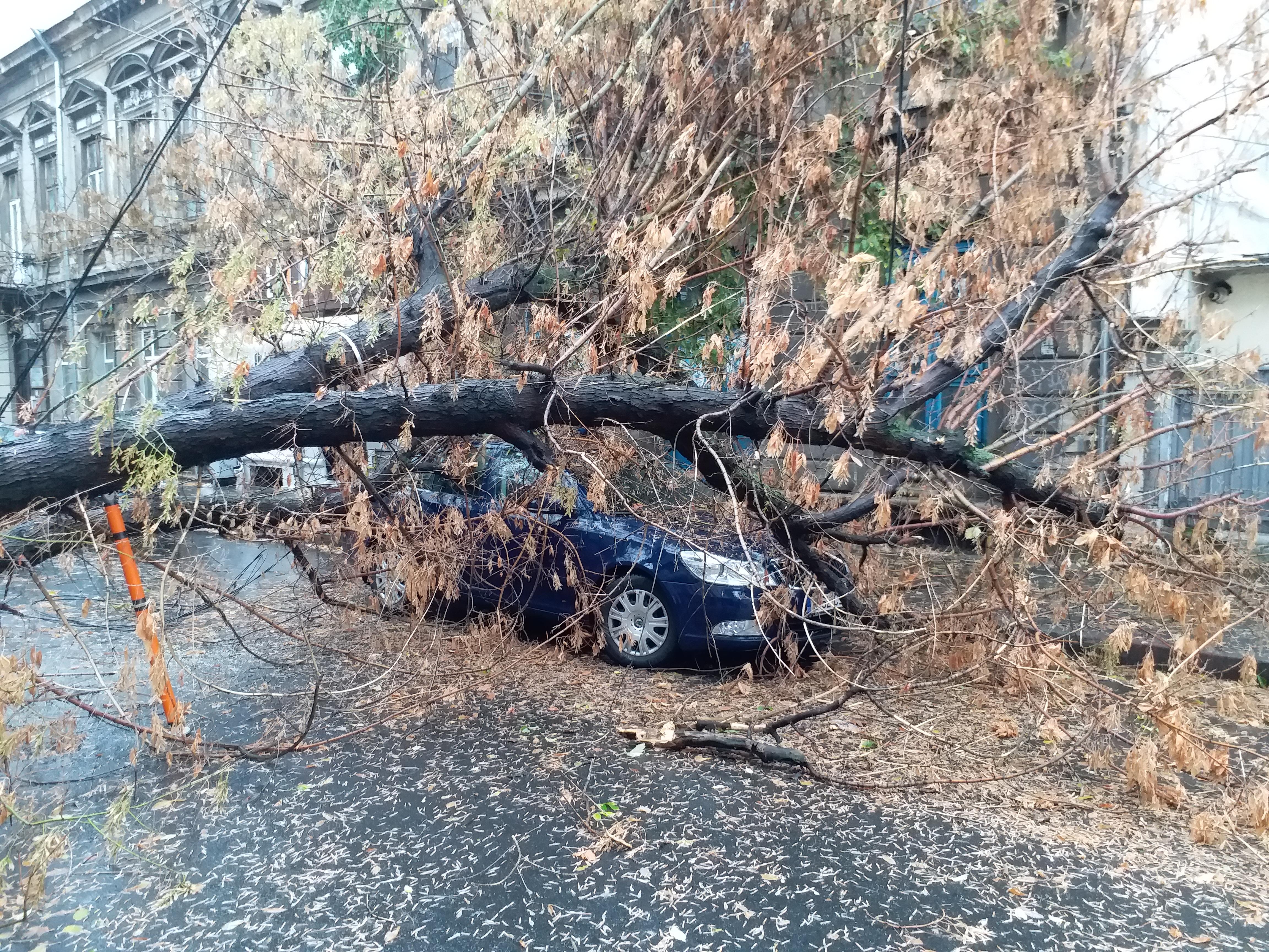 HAOS în Bucureşti din cauza VIJELIEI. Peste 80 de maşini făcute praf de copacii căzuţi, acoperişuri smulse şi aruncate pe străzi, zeci de intervenţii simultane