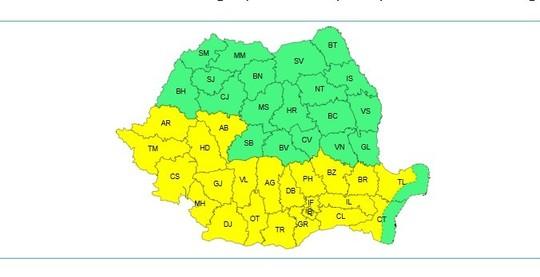 HARTĂ. Cod galben de caniculă în jumătate din ţară şi în Capitală