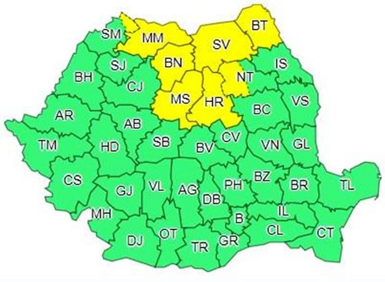 Harta zonelor afectate de ninsori puternice şi viscol | Sursa foto: ANM
