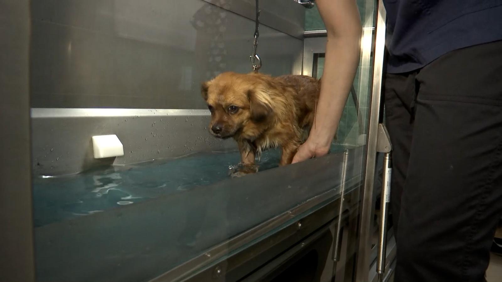 Hidroterapie pentru câinii răniţi sau cu probleme locomotorii. O ședință de tratament costă între 100 şi 200 de lei