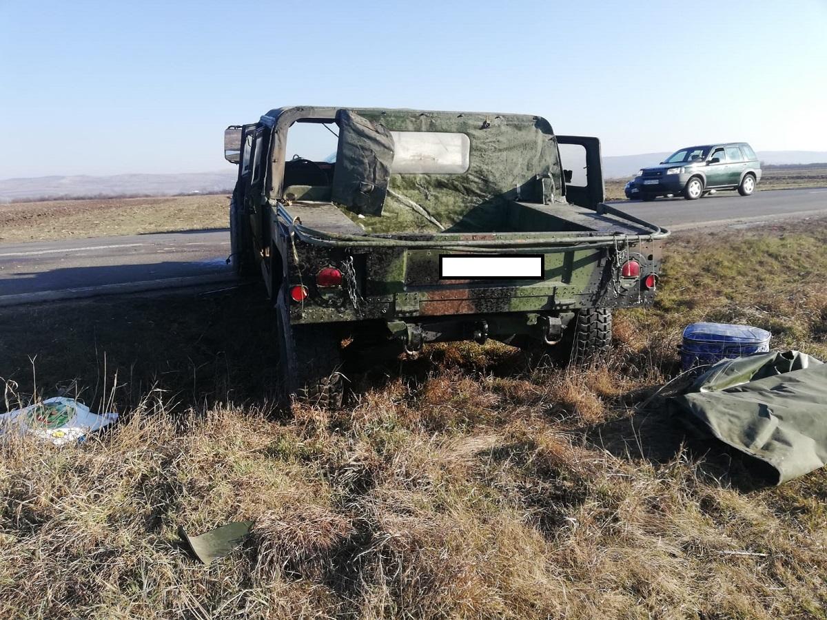 Un Hummer militar a scos de pe şosea un camion de 40 de tone, lângă Aiud, în Alba