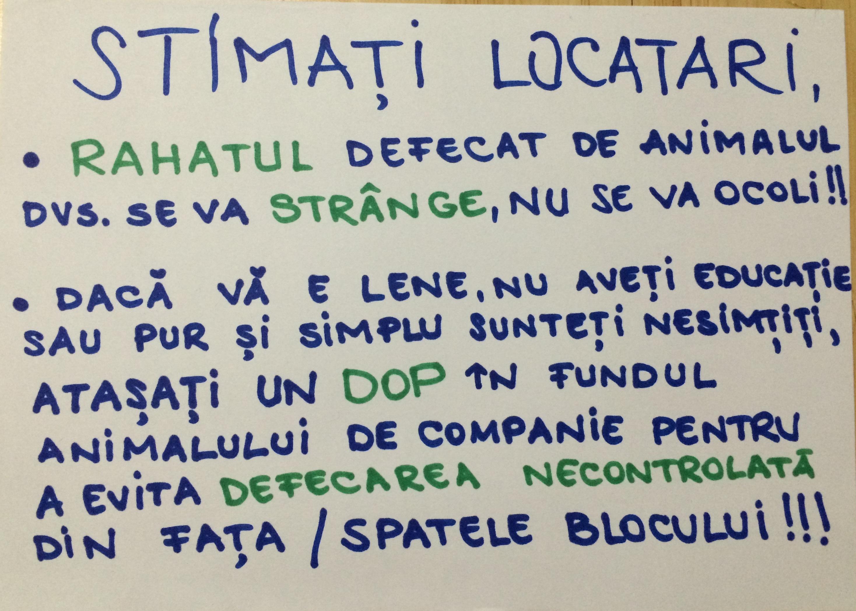 Și bunul simț are limite! Ce MESAJ a lăsat un ROMÂN tuturor vecinilor săi care dețin animale de companie