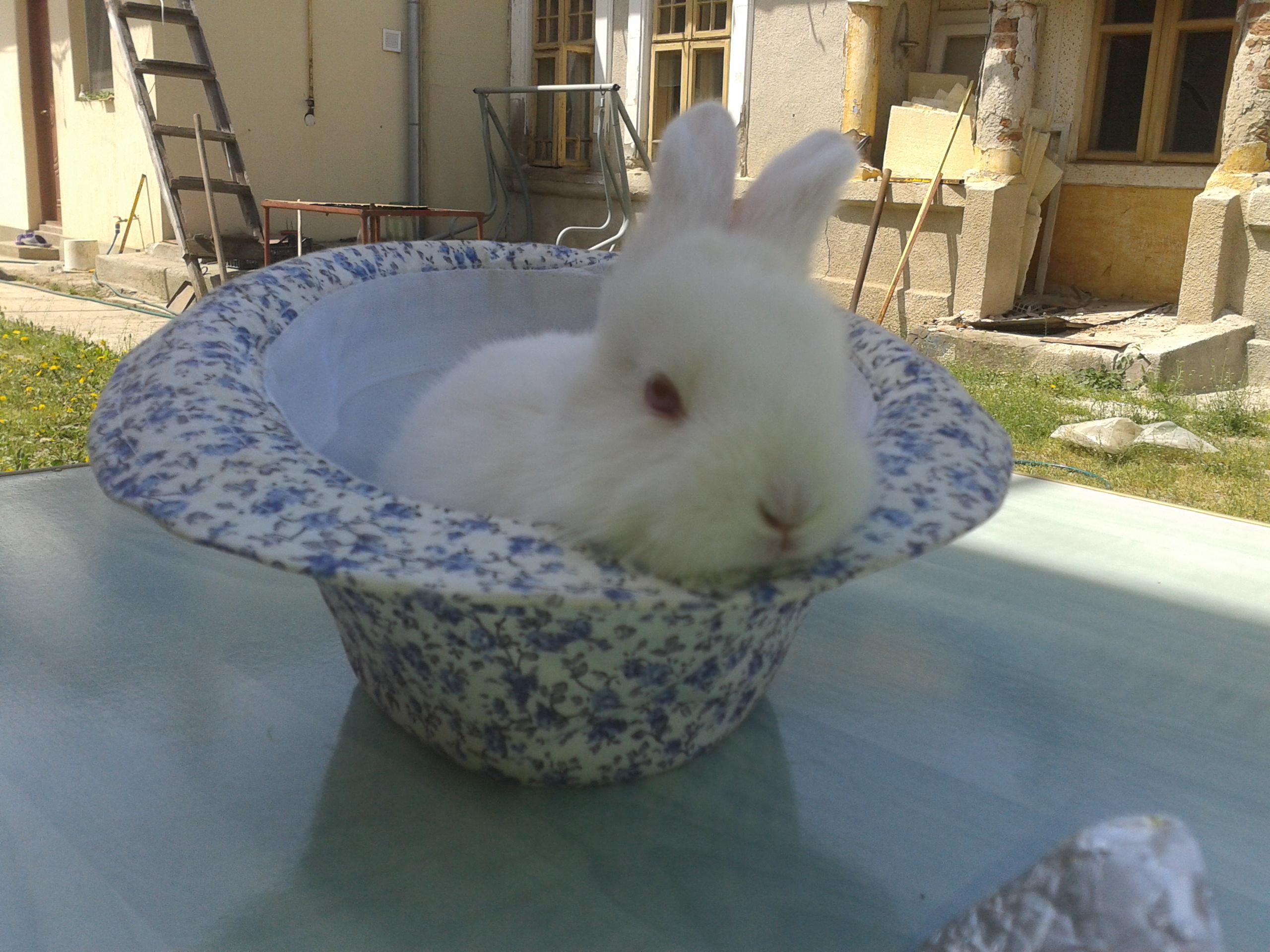 iepurasi care stau in palarie