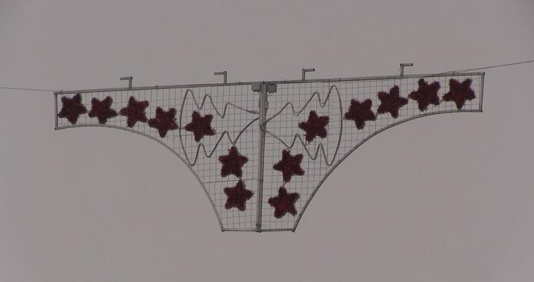 Imaginația edililor din Oltenia nu are limite. Lenjerie intimă pe post de ghirlande, în centrul oraşului Filiaşi! (VIDEO)