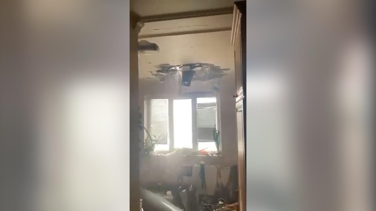 Imaginea dezastrului: Bombă căzută în mijlocul unui apartament din Harkov. Din tavan, apa curge şiroaie